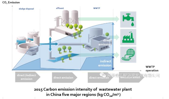 城镇污水的温室气体核算范围,主要包括了污水管网(sewersystem)、污水处理厂(wwtps)、污泥处置(sludge disposal)、出水(effluent)以及未处理污水(untreated)等五个排放单元。这五个排放单元都会产生直接排放;并且污水管网、污水处理厂和污泥处置单元也会产生间接排放。
