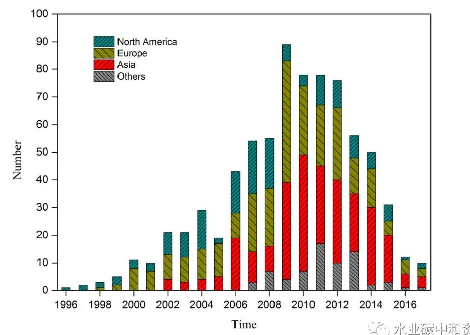 国际权威mbr应用网对世界范围内近20年来700余座大型mbr污水处理厂应用情况进行了逐年统计,并绘制了如图2所示的mbr工程应用趋势。本课题组也统计世界范围内大型mbr项目(表2)。可以看到,进入21世纪后,mbr技术首先在北美和欧洲获得青睐,新增项目也都集中在这两个区域。随后,亚洲和其它地区(主要为澳洲?北非)迅速跟进。mbr工程应用在2009~2012年间达到鼎盛时期;然而,从2013年开始mbr工程应用出现大幅回落,直至近两年应用数量只有鼎盛时期10%。