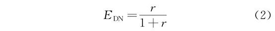 生物池内回流比大小直接决定脱氮效率。在假设生物硝化及反硝化效率均为100%的前提下,脱氮效率随着内回流比的增大而增大,脱氮效率edn计算见式(2):