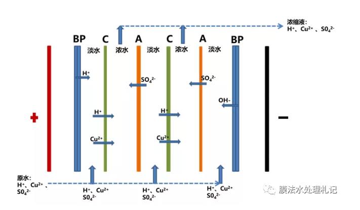 我们知道金属离子一般是通过极膜渗透至极水室,而电渗析常规所用的极膜都属于阳离子交换膜,甚至有些还以全氟磺酸膜为极膜,在金属溶液的系统,它基本都会中招。系统避免溶液中的金属离子进入极室,上面原理图只是一个参考,同样市场上也有用阴膜做极膜、单价选择性离子交换膜做极膜等,有兴趣的可以再去做些延伸。